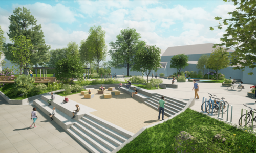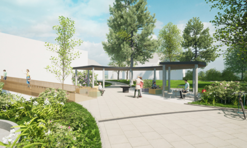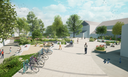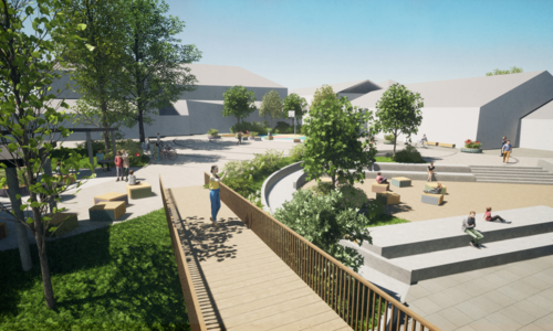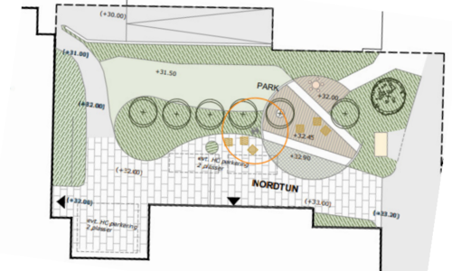 I 2028 skal hovudtunet stå ferdig med grøntområde, ute-amfi, sitjegrupper, og tuntreet stødig og trufast midt i det heile.