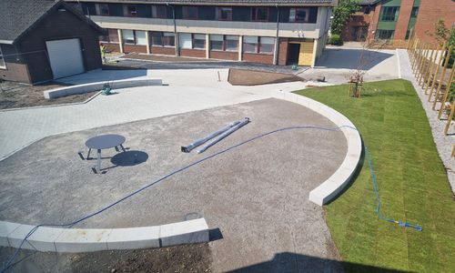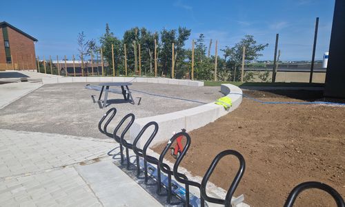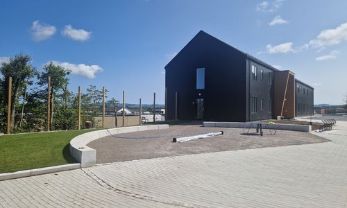 Sommaren 2025 stod uteområdet rundt det nye internatet ferdig.
